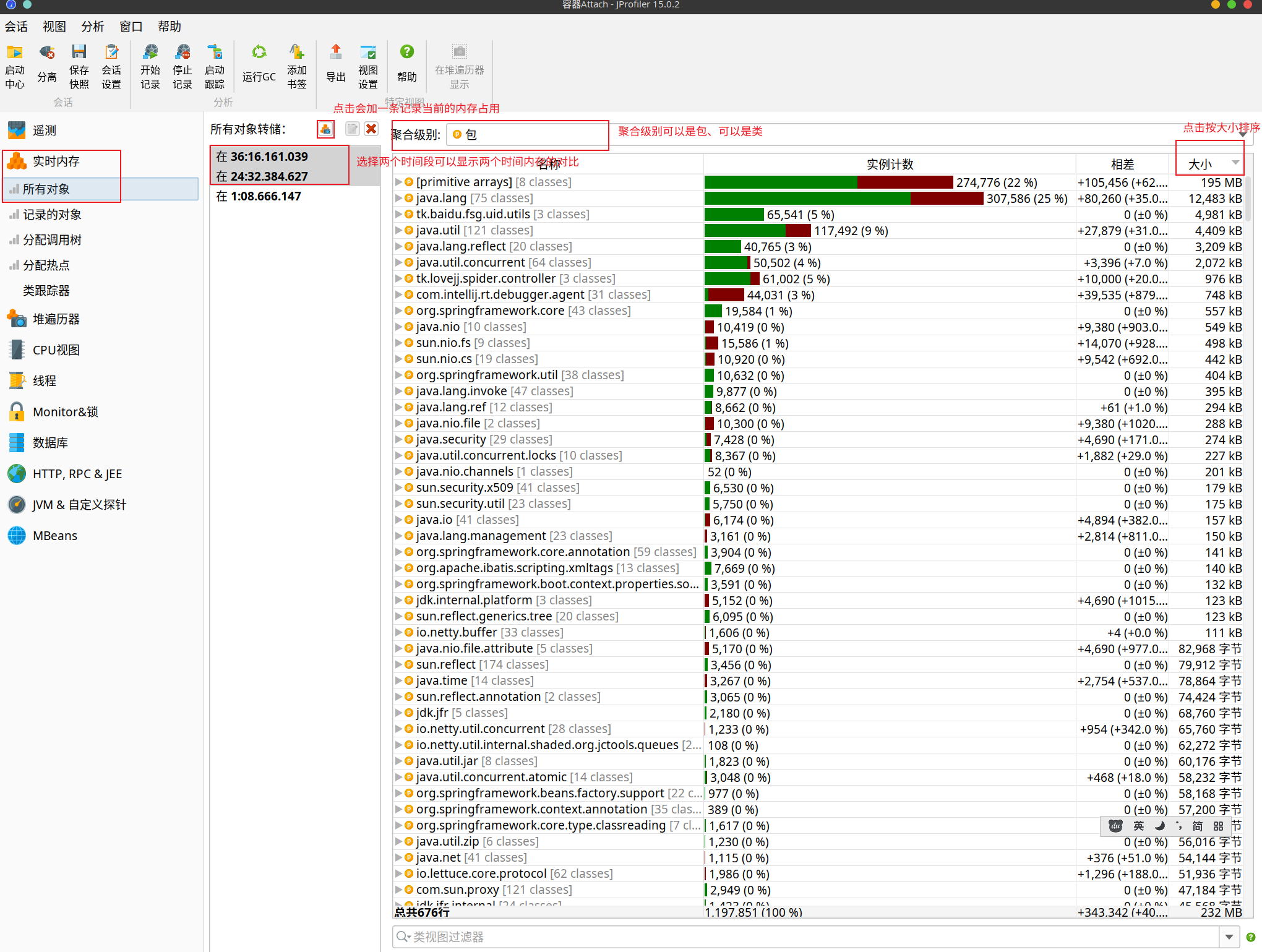-agentpath:/opt/jprofiler15/bin/linux-x64/libjprofilerti.so=port=8849,nowait分析内存泄露方法1